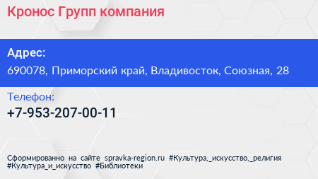 Кронос Групп, компания по адресу 690078, Приморский край, Владивосток, Союзная, 28 в дальнейшем Организация, размещена в следующих категориях: