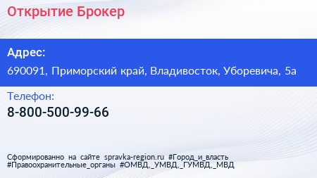 Открытие Брокер по адресу 690091, Приморский край, Владивосток, Уборевича, 5а в дальнейшем Организация, размещена в следующих категориях: