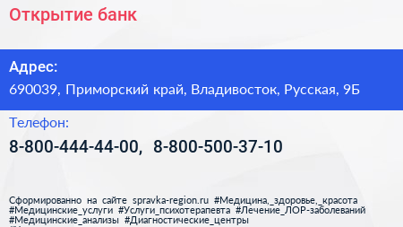 Открытие, банк по адресу 690039, Приморский край, Владивосток, Русская, 9Б в дальнейшем Организация, размещена в следующих категориях: