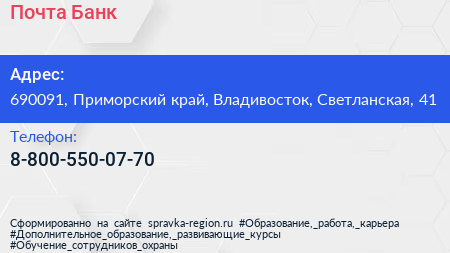Почта Банк по адресу 690091, Приморский край, Владивосток, Светланская, 41 в дальнейшем Организация, размещена в следующих категориях: