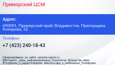 Приморский ЦСМ по адресу 690091, Приморский край, Владивосток, Прапорщика Комарова, 52 в дальнейшем Организация, размещена в следующих категориях: