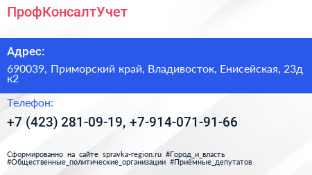 ПрофКонсалтУчет по адресу 690039, Приморский край, Владивосток, Енисейская, 23д к2 в дальнейшем Организация, размещена в следующих категориях: