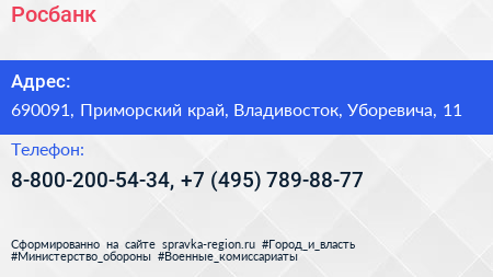 Росбанк по адресу 690091, Приморский край, Владивосток, Уборевича, 11 в дальнейшем Организация, размещена в следующих категориях: