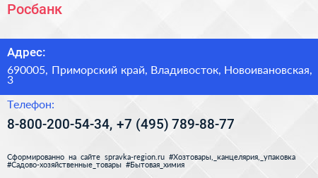 Росбанк по адресу 690005, Приморский край, Владивосток, Новоивановская, 3 в дальнейшем Организация, размещена в следующих категориях: