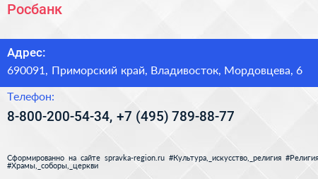 Росбанк по адресу 690091, Приморский край, Владивосток, Мордовцева, 6 в дальнейшем Организация, размещена в следующих категориях: