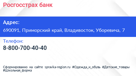 Росгосстрах банк по адресу 690091, Приморский край, Владивосток, Уборевича, 7 в дальнейшем Организация, размещена в следующих категориях: