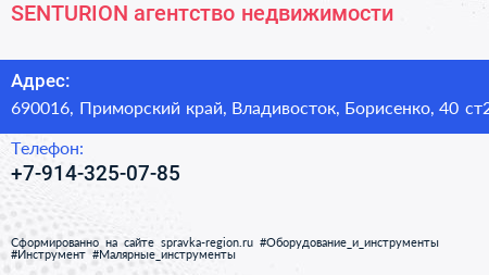 SENTURION, агентство недвижимости по адресу 690016, Приморский край, Владивосток, Борисенко, 40 ст2 в дальнейшем Организация, размещена в следующих категориях: