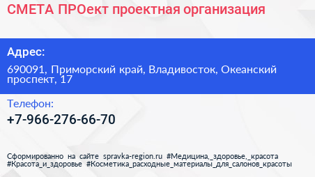 СМЕТА-ПРОект, проектная организация по адресу 690091, Приморский край, Владивосток, Океанский проспект, 17 в дальнейшем Организация, размещена в следующих категориях: