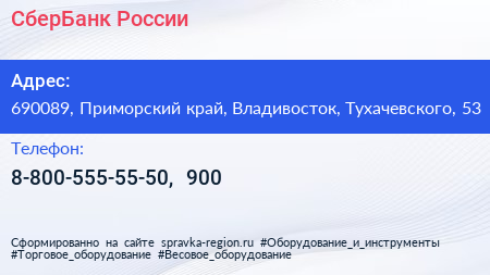 СберБанк России по адресу 690089, Приморский край, Владивосток, Тухачевского, 53 в дальнейшем Организация, размещена в следующих категориях: