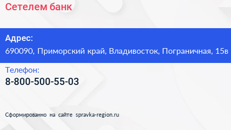 Сетелем банк по адресу 690090, Приморский край, Владивосток, Пограничная, 15в в дальнейшем Организация, размещена в следующих категориях:
