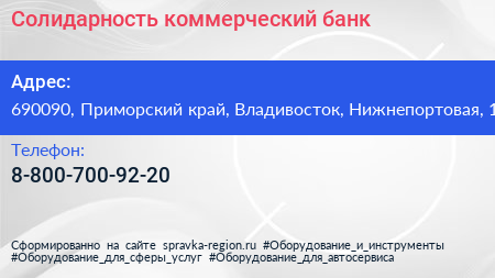 Солидарность, коммерческий банк по адресу 690090, Приморский край, Владивосток, Нижнепортовая, 1 в дальнейшем Организация, размещена в следующих категориях:
