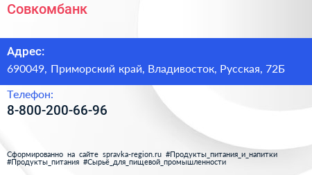 Совкомбанк по адресу 690049, Приморский край, Владивосток, Русская, 72Б в дальнейшем Организация, размещена в следующих категориях: