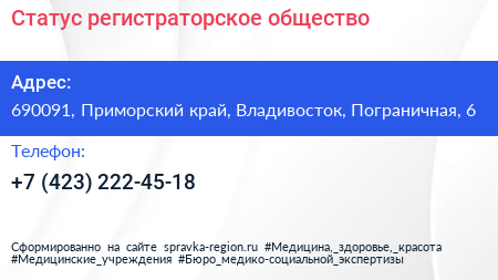 Статус, регистраторское общество по адресу 690091, Приморский край, Владивосток, Пограничная, 6 в дальнейшем Организация, размещена в следующих категориях: