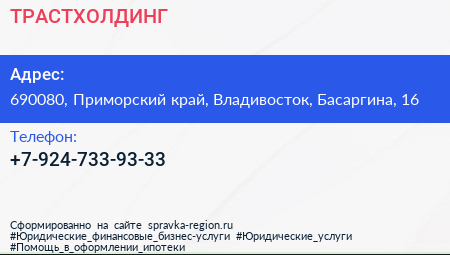 ТРАСТХОЛДИНГ по адресу 690080, Приморский край, Владивосток, Басаргина, 16 в дальнейшем Организация, размещена в следующих категориях: