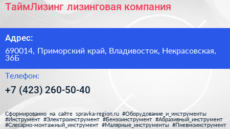 ТаймЛизинг, лизинговая компания по адресу 690014, Приморский край, Владивосток, Некрасовская, 36Б в дальнейшем Организация, размещена в следующих категориях: