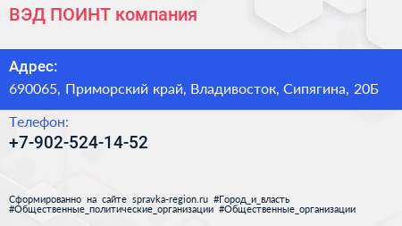 ВЭД ПОИНТ, компания по адресу 690065, Приморский край, Владивосток, Сипягина, 20Б в дальнейшем Организация, размещена в следующих категориях: