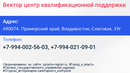 Вектор, центр квалификационной поддержки по адресу 690074, Приморский край, Владивосток, Снеговая, 19г в дальнейшем Организация, размещена в следующих категориях: