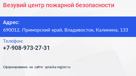 Везувий, центр пожарной безопасности по адресу 690012, Приморский край, Владивосток, Калинина, 133 в дальнейшем Организация, размещена в следующих категориях: