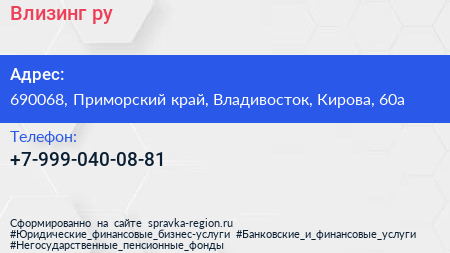 Влизинг.ру по адресу 690068, Приморский край, Владивосток, Кирова, 60а в дальнейшем Организация, размещена в следующих категориях: