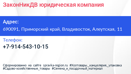 ЗаконНикДВ, юридическая компания по адресу 690091, Приморский край, Владивосток, Алеутская, 11 в дальнейшем Организация, размещена в следующих категориях: