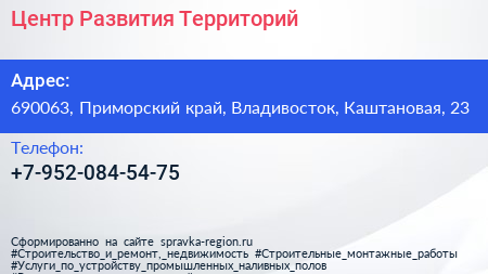 Центр Развития Территорий по адресу 690063, Приморский край, Владивосток, Каштановая, 23 в дальнейшем Организация, размещена в следующих категориях:
