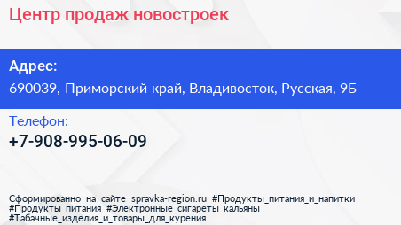 Центр продаж новостроек по адресу 690039, Приморский край, Владивосток, Русская, 9Б в дальнейшем Организация, размещена в следующих категориях: