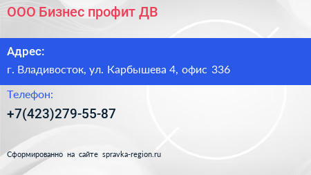 ООО Бизнес профит ДВ по адресу г. Владивосток, ул. Карбышева 4, офис 336 в дальнейшем Организация, размещена в следующих категориях: