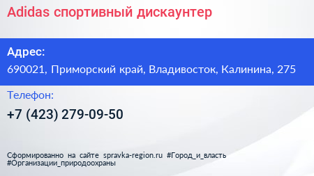 Adidas, спортивный дискаунтер по адресу 690021, Приморский край, Владивосток, Калинина, 275 в дальнейшем Организация, размещена в следующих категориях: