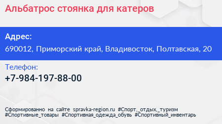 Альбатрос, стоянка для катеров по адресу 690012, Приморский край, Владивосток, Полтавская, 20 в дальнейшем Организация, размещена в следующих категориях: