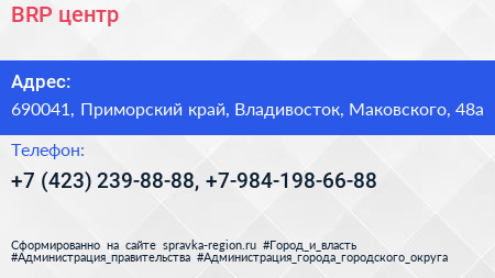 BRP, центр по адресу 690041, Приморский край, Владивосток, Маковского, 48а в дальнейшем Организация, размещена в следующих категориях: