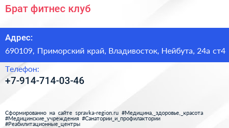 Брат, фитнес клуб по адресу 690109, Приморский край, Владивосток, Нейбута, 24а ст4 в дальнейшем Организация, размещена в следующих категориях:
