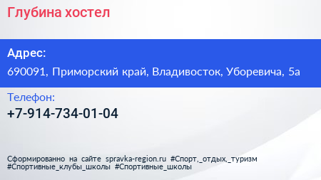 Глубина, хостел по адресу 690091, Приморский край, Владивосток, Уборевича, 5а в дальнейшем Организация, размещена в следующих категориях: