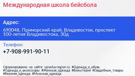 Международная школа бейсбола по адресу 690048, Приморский край, Владивосток, проспект 100-летия Владивостока, 30д в дальнейшем Организация, размещена в следующих категориях: