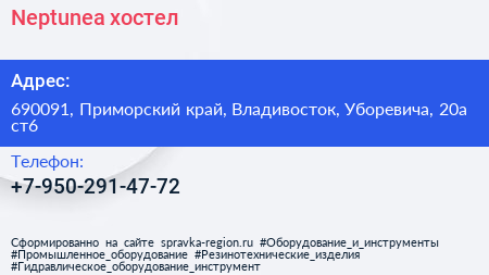 Neptunea, хостел по адресу 690091, Приморский край, Владивосток, Уборевича, 20а ст6 в дальнейшем Организация, размещена в следующих категориях: