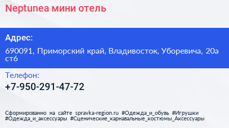 Neptunea, мини-отель по адресу 690091, Приморский край, Владивосток, Уборевича, 20а ст6 в дальнейшем Организация, размещена в следующих категориях: