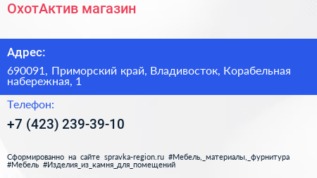 ОхотАктив, магазин по адресу 690091, Приморский край, Владивосток, Корабельная набережная, 1 в дальнейшем Организация, размещена в следующих категориях: