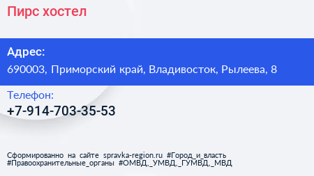 Пирс, хостел по адресу 690003, Приморский край, Владивосток, Рылеева, 8 в дальнейшем Организация, размещена в следующих категориях: