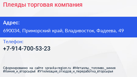 Плеяды, торговая компания по адресу 690034, Приморский край, Владивосток, Фадеева, 49 в дальнейшем Организация, размещена в следующих категориях: