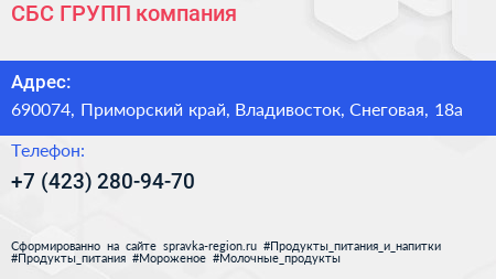 СБС-ГРУПП, компания по адресу 690074, Приморский край, Владивосток, Снеговая, 18а в дальнейшем Организация, размещена в следующих категориях: