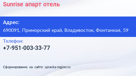Sunrise, апарт-отель по адресу 690091, Приморский край, Владивосток, Фонтанная, 59 в дальнейшем Организация, размещена в следующих категориях: