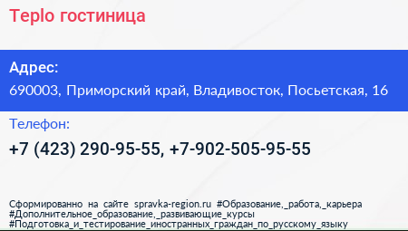 Teplo, гостиница по адресу 690003, Приморский край, Владивосток, Посьетская, 16 в дальнейшем Организация, размещена в следующих категориях: