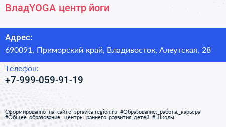 ВладYOGA, центр йоги по адресу 690091, Приморский край, Владивосток, Алеутская, 28 в дальнейшем Организация, размещена в следующих категориях: