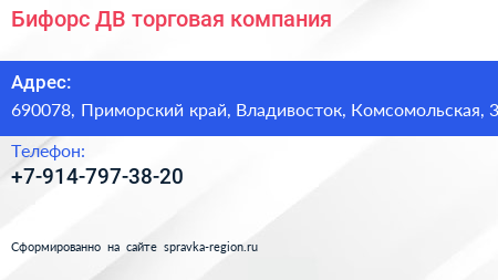 Бифорс ДВ, торговая компания по адресу 690078, Приморский край, Владивосток, Комсомольская, 3 в дальнейшем Организация, размещена в следующих категориях: