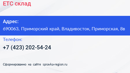 ЕТС, склад по адресу 690063, Приморский край, Владивосток, Приморская, 8в в дальнейшем Организация, размещена в следующих категориях: