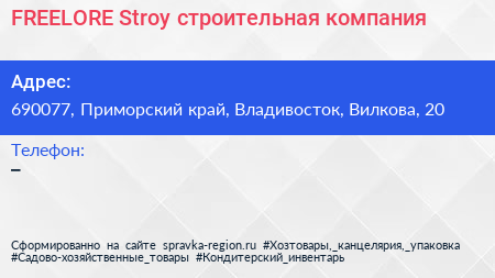 FREELORE-Stroy, строительная компания по адресу 690077, Приморский край, Владивосток, Вилкова, 20 в дальнейшем Организация, размещена в следующих категориях: