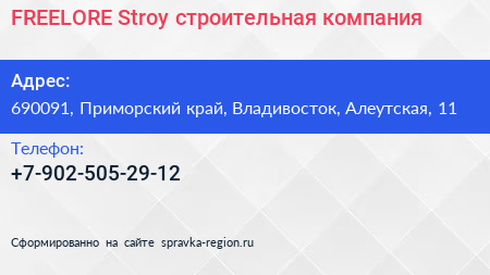 FREELORE-Stroy, строительная компания по адресу 690091, Приморский край, Владивосток, Алеутская, 11 в дальнейшем Организация, размещена в следующих категориях: