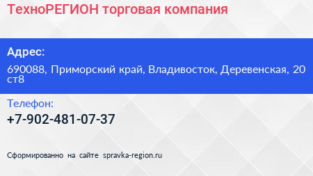 ТехноРЕГИОН, торговая компания по адресу 690088, Приморский край, Владивосток, Деревенская, 20 ст8 в дальнейшем Организация, размещена в следующих категориях: