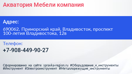Акватория Мебели, компания по адресу 690062, Приморский край, Владивосток, проспект 100-летия Владивостока, 12в в дальнейшем Организация, размещена в следующих категориях: