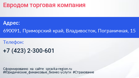 Евродом, торговая компания по адресу 690091, Приморский край, Владивосток, Пограничная, 15 в дальнейшем Организация, размещена в следующих категориях: