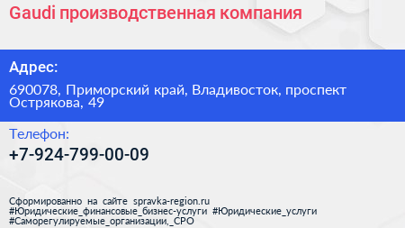 Gaudi, производственная компания по адресу 690078, Приморский край, Владивосток, проспект Острякова, 49 в дальнейшем Организация, размещена в следующих категориях: